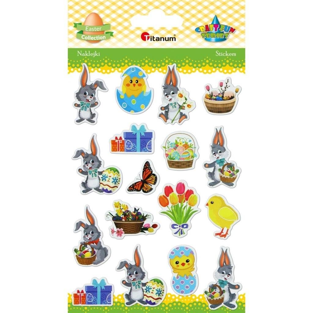 Naklejki wypukłe zajączki, kurczaczki, koszyczki wielkanocne, bukiet tulipanów, prezenty, motyl 17szt. číst celé