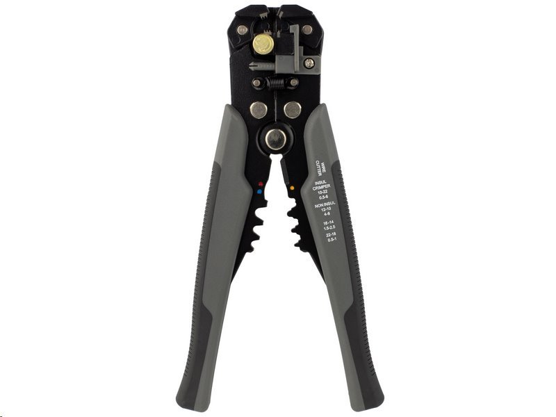 • Délka: 205 mm• Mechanismus: čelní, automatický• Kapacita odizolování kabelů: 0,5 - 6 mm² (24-10 AWG)• Lisování izolovaných a neizolovaných koncovek 1,5 - 6 mm (22-10 AWG)• Pomocí nastavovacího knoflíku lze nástroj přizpůsobit průměru vodiče, z něhož má být odstraněna izolace.• Nepoškozuje vodič.• Navíc - řezačka kabelů.