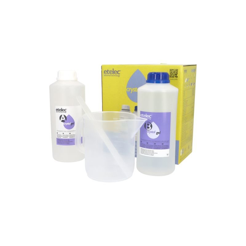 CRYSTALGEL je rozebíratelný čirý dvousložkový silikonový gel pro izolační výplně a uzavření odbočných krabic a skříní obsahujících elektrické spoje do 1 kV nebo elektronické součásti. Díky svým vlastnostem je vhodný pro celou řadu použití. ČIRÝ, KRYSTALICKÝCrystalgel se vyznačuje velmi vysokou čirostí, díky které zůstává obsah krabice viditelný. SNADNÉ POUŽITÍ BEZ PLÝTVÁNÍObě složky dodávané v samostatných obalech vždy zaručují správný směšovací poměr 1:1. CRYSTALGEL se dodává s novou odměrkou o objemu 1 litr, která umožňuje smíchat celý objem nádobek v rámci jedné operace a ještě více tak urychlit instalaci. CRYSTALGEL se podle potřeby může používat po částech a z otevřeného balení, čímž se jeho využitelnost zvyšuje na maximum.VELMI DOBRÉ CHARAKTERISTIKYVysoká elektrická pevnost: 24,5 kV/mm. Široký teplotní rozsah použití: od -60 do 200 °C.ZACHOVÁVÁ ROZEBÍRATELNOST A JE ODSTRANITELNÝPo zesíťování je možné CRYSTALGEL snadno odstranit bez použití nástrojů, a to i po dlouhé době.NÍZKÁ VISKOZITANízká viskozita zajišťuje, že se CRYSTALGEL snadno lije; kromě toho zaručuje rychlé a bezpečné vyplnění krabic a meziprostor.BEZPEČNÝCRYSTALGEL není toxický, dráždivý, je bez zápachu, neobsahuje rozpouštědla a není klasifikován jako nebezpečný výrobek ve smyslu nařízení Evropského parlamentu a Rady č. 1272/2008 (CLP).POUŽITÍ:•Výplň odbočných krabic•Izolace elektrických spojů 0,6/1 kV•Izolace štítků a elektronických komponentPŘEDNOSTI:•Čirý, krystalický•Netoxický•Zachovává rozebíratelnost•Ekologický•Se snadným litím•Díky samostatným nádobkám a odměrce bez plýtvání•Vynikající elektrická izolace•Ochrana před atmosférickými vlivy (déšť, vlhko, prach) a vniknutím zvířat, hmyzu, listí•Dobrá mechanická pevnost•Bez expirace•Použitelný okamžitě po otevření