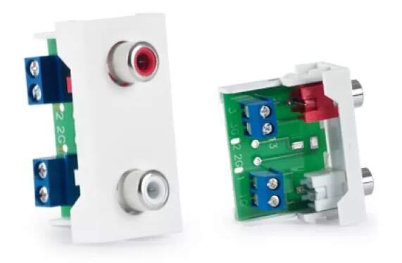 Instalační 2x RCA pro modulární konektorový systém "WP89MCH". Je vhodný pro instalace do učeben, konferenčních místností, atd ...
