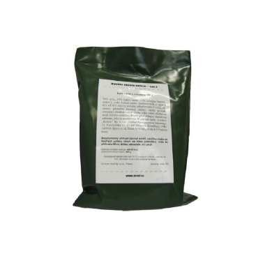 Rychle ohřátý pokrm ARPOL Vojenská potravinová dávka, MRE, bojová dávka potravin BDP. Existují různé názvy pro obdobný výrobek - balíček s trvanlivými potravinami, které se snadno připravují. Tento balíček vyrábí polská firma ARPOL a kromě jiných ho dodává také do polské armády. Tento balíček obsahuje jídlo na jeden vydatný oběd. Výhodou balíčku Arpol ROP je rychlost, s jakou můžete začít obědvat a to bez klasického vařiče i bez větší námahy. Podobně jako americké MRE obsahuje tato vojenská dávka bezplamenný ohřívač. Všechnu práci za vás tedy udělá chemická reakce uvnitř ohřívače. hlavní znaky obsahuje jídlo na jeden oběd hmotnost jídla: 300 g hmotnost kompletního balíčku: 440 g vyrobeno podle norem EU Obsah balení MRE ROP: hlavní chod bezplamenný ohřívač ubrousek sůl pepř voda v pytlku pro bezplamenný ohřívač (velmi šikovné, protože do ohřívače nalejete přesně tolik vody, kolik je potřeba) ohřívač je americké výroby a funguje na principu chemické reakce Obsah jednotlivých menu ROP Označení Hlavní chod kcal Set 1 Lasagne 380,79 Set 2 Kuřecí maso s rýží a zeleninou 469,98 Set 3 Bograc 386,13 Set 4 Vepřová plec s rýží a zeleninou 395,28 Set 5 Fazole po bretaňsku 435,75 Set 6 Bigos s klobásou a slaninou 439,23 Set 7 Špagety s vepřovým masem 507,15 Set 8 Maďarský hovězí guláš 690 Set 9 Krůtí filet v hořčičné omáčce 480 Set 10 Klobása v rajčatové omáčce s cizrnou 780 Set 11 Nudle se zelím a houbami 380 Set 12 Rajské risotto 380 Ke každému setu jsou dodávány speciální suchary. Speciální tvrdé suchary (45 g) pšeničná mouka žitná mouka invertní cukr neztužený tuk sůl glukózový sirup cukr kmín, droždí výrobek může obsahovat: mléko, vejce, sóju, arašídy SET 1 - Lasagne (400 g) Sterilovaná konzerva s masem a zeleninou Složení: lasagne (mouka z tvrdé pšenice), maso z vepřové plece, voda, sýr (mléko, barvivo: E 160b, chlorid vápenatý E 509, syřidlo, sůl, bakteriální sýrařská kultura), přísady (koření, sůl, celer, zvýrazňovače chuti: E 621 a E 635, glukóza), rajčatový protlak, modifikovaný kukuřičný škrob, sušená cibule, řepkový olej Výrobek může obsahovat sóju, hořčiici a vejce. SET 2 - Kuře s rýží a zeleninou (400 g) Sterilovaná konzerva s masem a zeleninou Složení: voda, rýže, maso z kuřecích stehen, mrkev, zelený hrášek, přísady (cukr, koření, sůl, kvasnicový extrakt, sušená zelenina, celer, aroma, částečně ztužený palmový tuk, modifikovaný kukuřičný škrob, sójový bílkovinný hydrolyzát, zvýrazňovače chuti: E 621 a E 635, barviva: amoniakový karamel a riboflavin, pšeničná mouka, ocet, glukóza), pšeničná mouka, máslo z mléka, Výrobek může obsahovat hořčici a vejce. SET 3 - Bograč (400 g) Sterilovaná konzerva s masem a zeleninou Složení: voda, maso z hovězí plece, brambory, těstoviny (mouka z tvrdé pšenice), rajčatový protlak, pšeničná mouka, přísady (koření, sůl, kvasnicový extrakt, sušená zelenina, celer, aroma, částečně ztužený palmový tuk, modifikovaný kukuřičný škrob, sójový bílkovinný hydrolyzát, zvýrazňovače chuti: E 621 a E 635, barvivo: riboflavin a amoniakový karamel, ocet, cukr, glukóza), modifikovaný kukuřičný škrob, margarín (rostlinné oleje: palmový a řepkový, voda, sůl, konzervační přísada: sorban draselný, barvivo: annatto, aromat), sušená červená paprika Výrobek může obsahovat hořčici, mléko, vejce. SET 4 - Vepřová plec se zeleninou a rýží (400 g) Sterilovaná konzerva s masem a zeleninou Složení: rýže, maso z vepřové plece, voda, zelený hrášek, mrkev, přísady (sůl, cukr, koření, ocet, kvasnicový extrakt, barvivo: E 150c, sójový bílkovinný hydrolyzát, aroma, celer, zvýrazňovače chuti: E 621 a E 635, glukóza) Výrobek může obsahovat mléko včetně laktózy, gluten, hořčici a vejce. SET 5 - Fazole po bretaňsku (400 g) Sterilovaná konzerva s masem a zeleninou Složení: fazole, voda, klobása (vepřové maso, voda, sůl, koření, zvýrazňovač chuti E 621, konzervačná přísada: dusitan sodný), uzený vepřový bůček (vepřové maso 54%, vepřový tuk 26%, voda, sůl, stabilizátor E 451, zahušťovadlo E 407a, zvýrazňovač chuti E 621, sójová bílkovina, konzervační přísada: dusitan sodný), rajčatový protlak, pšeničná mouka, přísady (cukr, koření, sůl, zvýrazňovače chuti: E 621 a E 635, sušená zelenina, celer, bramborová škrob, kvasnicový extrakt, laktóza z mléka, řepkový olej, barvivo: riboflavin, aroma, částečně ztužený palmový tuk, modifikovaný kukuřičný škrob, sójový bílkovinný hydrolyzát), sušená cibule Výrobek může obsahovat mléko, sóju, hořčici a vejce. SET 6 - Bigos s klobásou (400 g) Sterilovaná konzerva s masem a zeleninou Složení: klobása (vepřové maso, voda, sůl, koření, zvýrazňovač chuti E 621, konzervační přísada: dusitan sodný), kysané zelí, bílé zelí, voda, vepřové maso, sušená rajčata v prášku, pšeničná mouka, voda, přísady (cukr, koření, sůl, celer, zvýrazňovače chuti: E 621 a E 635, glukóza), sušená cibule, sušené houby Výrobek může obsahovat mléko včetně laktózy, sóju, hořčici a vejce. SET 7 - Špagety s vepřovým masem (400 g) Sterilovaná konzerva s masem a zeleninou Složení: těstoviny (mouka z tvrdé pšenice), vepřové maso, voda, přísady (sušený rajčatový protlak, sůl, koření, celer, zvýrazňovače chuti: E 621 a E 635, glukóza, italské byliny), sušená cibule SET 8 - Maďarský hovězí guláš (400 g) Sterilovaná konzerva s masem a zeleninou Složení: Hovězí maso (25%), voda, červená paprika (19,5%), mrkev (10,4%), rajčatový protlak (9%), pšeničná mouka, sušená cibule, přísady (sůl, koření, cukr, zvýrazňovač chuti: E621 a E635, s