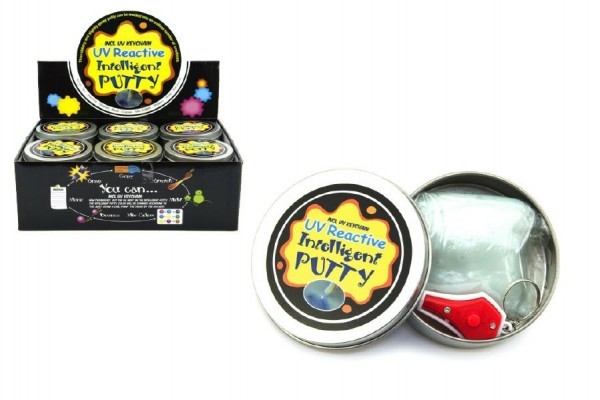 Inteligentní plastelína/modelína UV-reaktivní, 2 druhy, v plechovce 8x8cm 24ks v boxu - 1 kus
