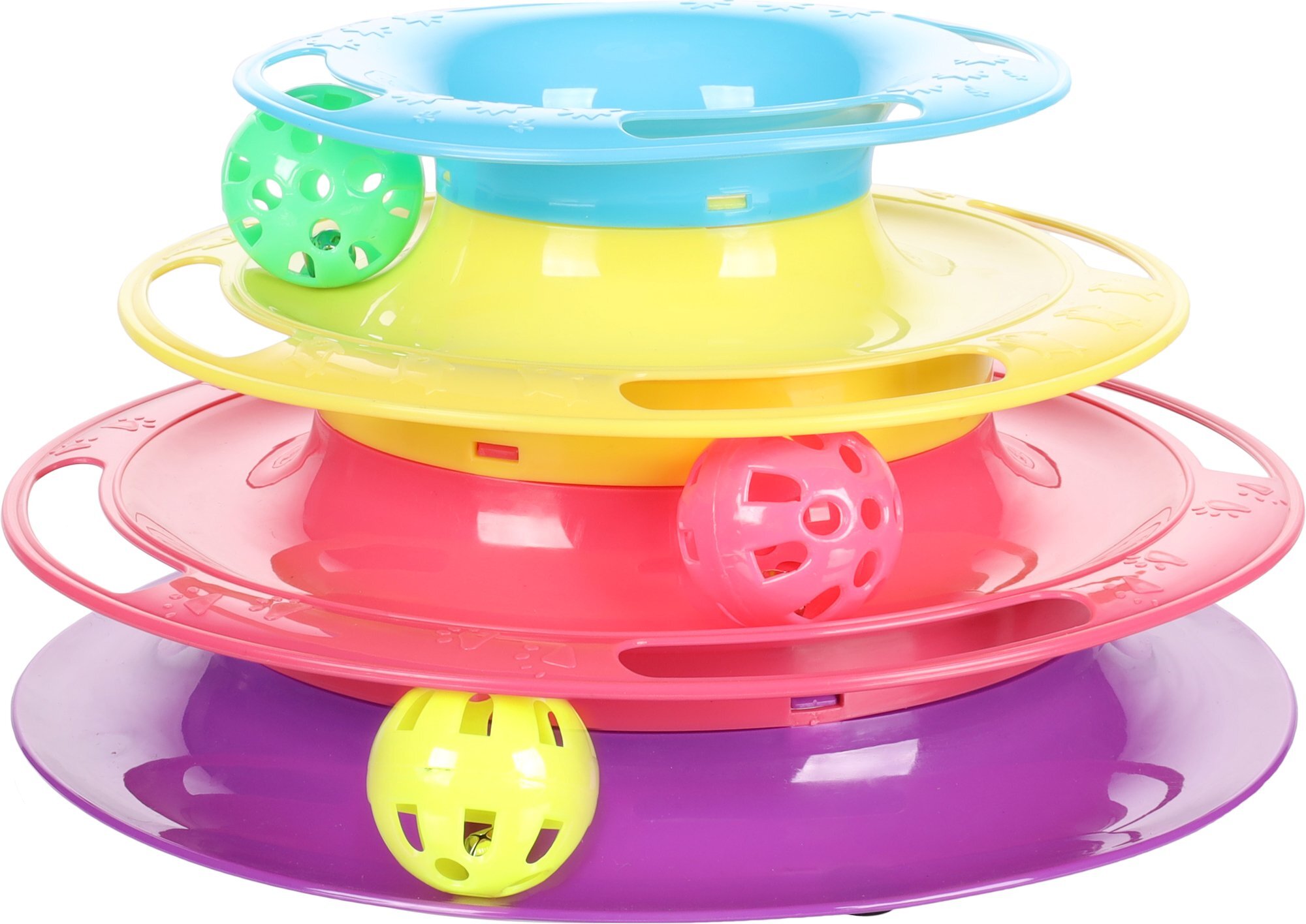 Vaše kočka si užije dynamickou hru s míčky, které se volně kutálejí po třech úrovních věže a přinášejí jí nejen fyzickou, ale i psychickou stimulaci. Každý míček je vybaven zvonkem, který upoutá kočičí pozornost a povzbuzuje ji k dalšímu hraní. Věž můžete snadno rozebrat pro pohodlné čištění a protiskluzové nožičky zajistí stabilitu na jakémkoli povrchu.
