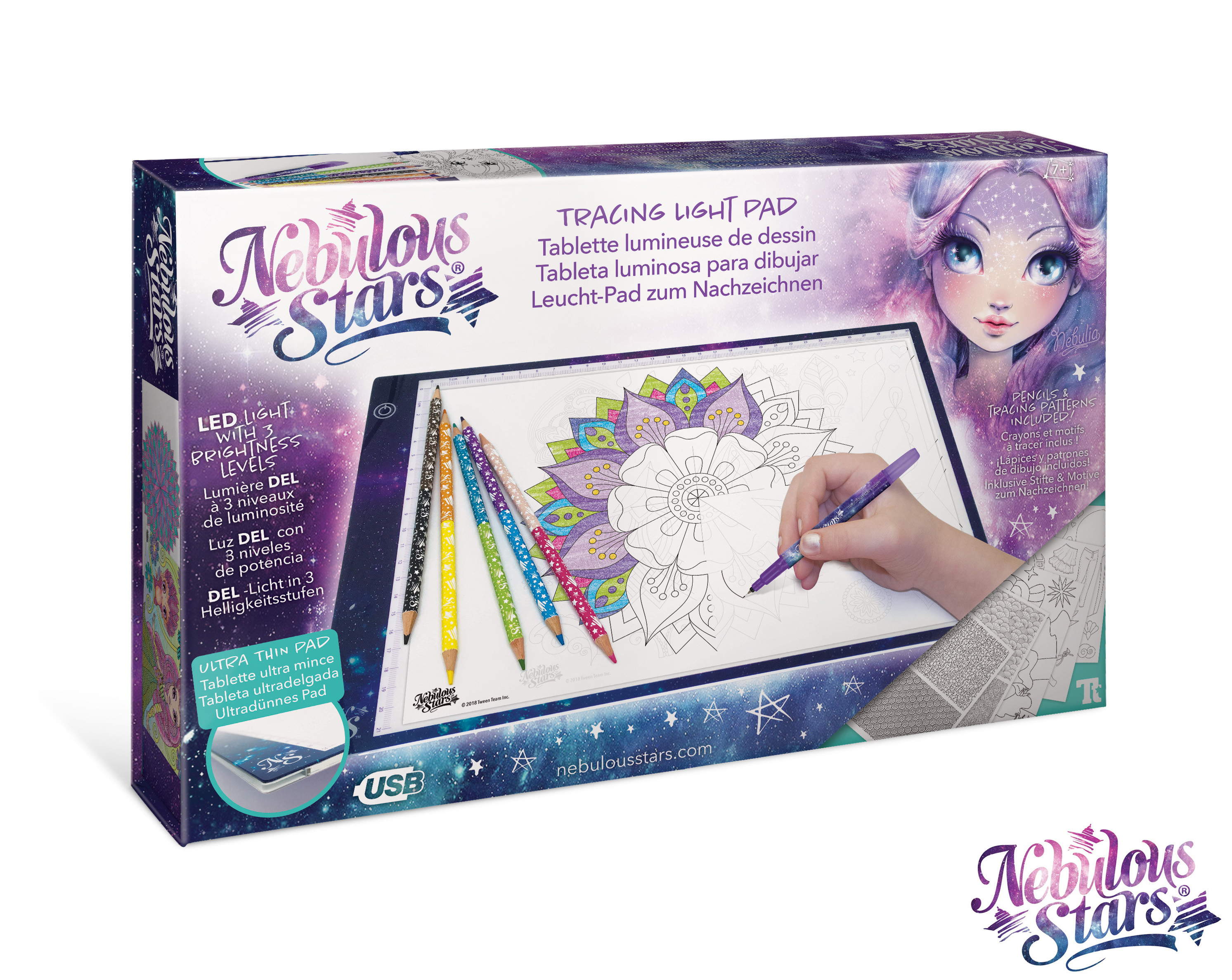 Nebulous Star Tablet na kreslení je jednoduchý a intuitivní. Stačí ho připojit k zařízení pomocí USB kabelu, zapnout a začít tvořit. Intenzitu záře lze snadno upravit opakovaným stiskem tlačítka, což umožní lepší viditelnost a přesnost při práci. Součástí balení je kromě tabletu i 5 oboustranných pastelek, černý fix a inspirativní archy s ilustracemi, které pomohou s motivací a dodají tvoření nový rozměr.