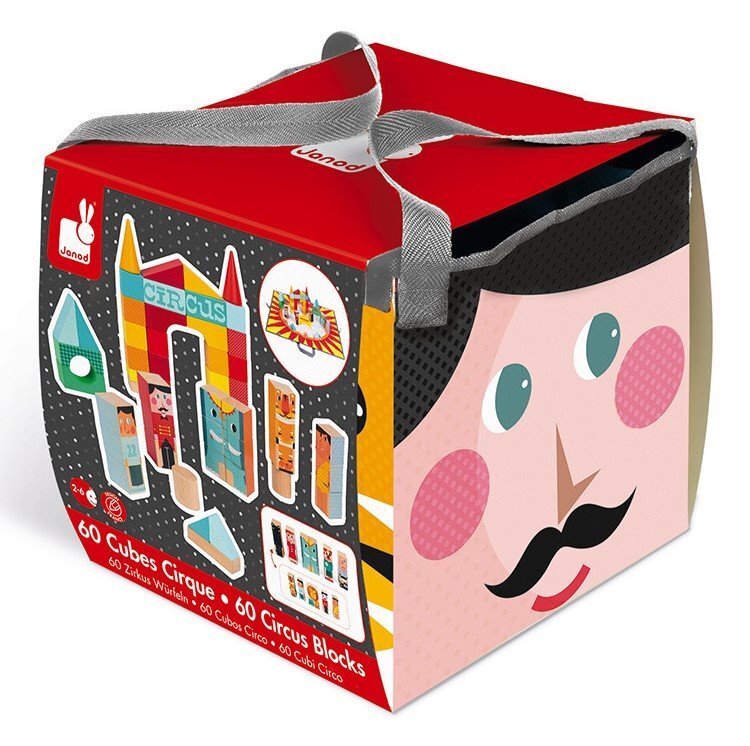 JANOD Dřevěné kostky Kubix Cirkus 60ks se skládací podložkou