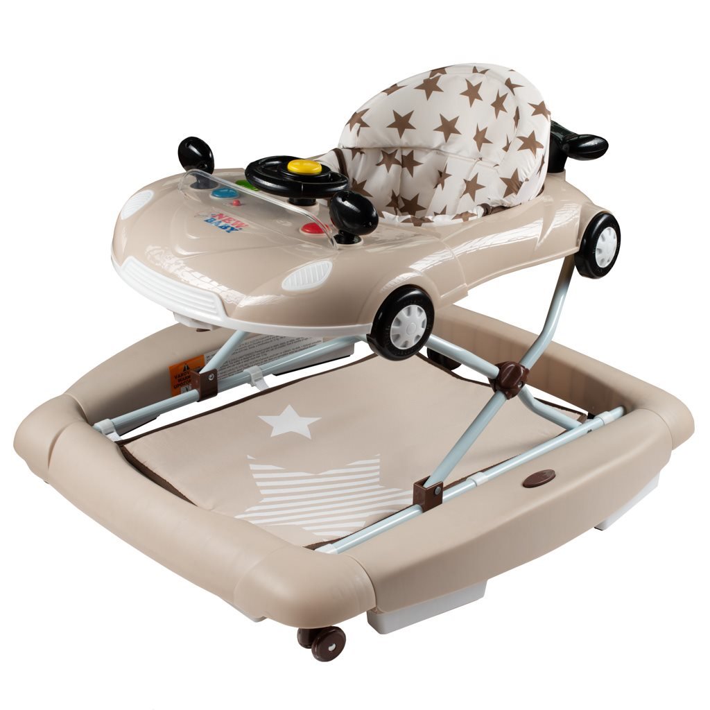 Dětské chodítko s houpačkou NEW BABY v moderním designu malého autíčka se čtyřmi kolečky a šesti bezpečnostními podložkami pomáhá dítěti se stabilitou při chůzi a zároveň přináší svět zábavy díky hracímu pultíku a možnosti jednoduché přestavby na houpačku. Interaktivní hrací pultík obsahuje volant, otáčecí zrcátka, vydává zvuky, svítí a lze jej vyjmout pro přístup k jídelnímu pultu. Chodítko je nastavitelné do několika poloh a má velice pohodlný potah, který lze vyprat a je v zadní části vyztužený. Vyrobeno z kvalitního plastového materiálu.- jednoduchá přestavba na houpačku- interaktivní hrací pultík obsahuje volant, otáčecí zrcátka, vydává zvuky a svítí (napájeno 2x1,5V AA bateriemi - nejsou součástí balení)- jídelní pultík- konstrukce z kvalitního plastu- přední otočná kolečka pro lepší ovladatelnost- bezpečnostní gumové podložky- jednoduše nastavitelná výška a jednoduché skládání- rozměry cca 75x70 cm- nosnost do 12 kg- splňuje normy EN 71 a EN 1273