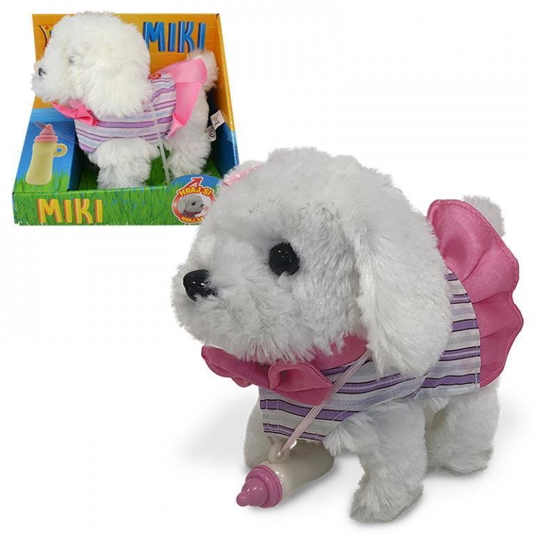 Interaktivní štěňátko s dotykovým sensorem, který má umístěný na hlavě. Funkce: Vytáhni pojistku ze zásobníku pro baterie. Přepni vypínač ON/OFF do polohy ON (zapnuto) a aktivuj funkce stiskem tlačítka senzoru (po určitém čase se funkce automaticky ukončí, proto dané tlačítko stiskni znovu) Tvé štěňátko začne štěkat, kňučet a přitom chodit! Stiskni jeho hlavu nebo ho zvedni, natoč tlamičkou proti sobě, aby vyplázlo svůj jazýček a zavrtělo ocáskem!. Ošetření látky: ruční čištění navlhčeným hadříkem ve vlažné, čisté nebo mýdlové vodě. Výrobek na baterie :Použijte 3× baterie „AA“ 1,5V. Baterie jsou součástí hračky - pouze pro zkušební provoz.