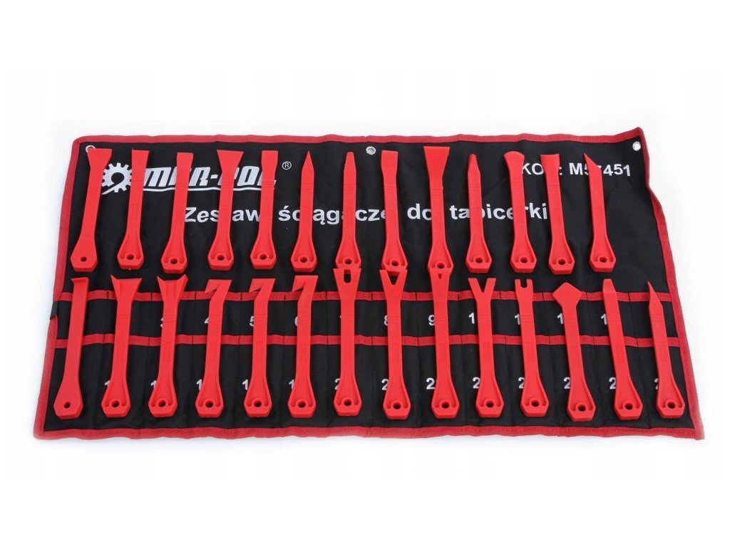 Specializované stahováky pro demontáž obložení, lamel, klipů a čalounění v automobilech a technických zařízeních. Souprava najde uplatnění v karosárnách a u mechaniků. Vyrobeny z nylonu, který zaručuje bezpečné použití pro plastové separované prvky. Mají speciální profily, které umožňují použití páky při demontáži sponek na čalounění.
