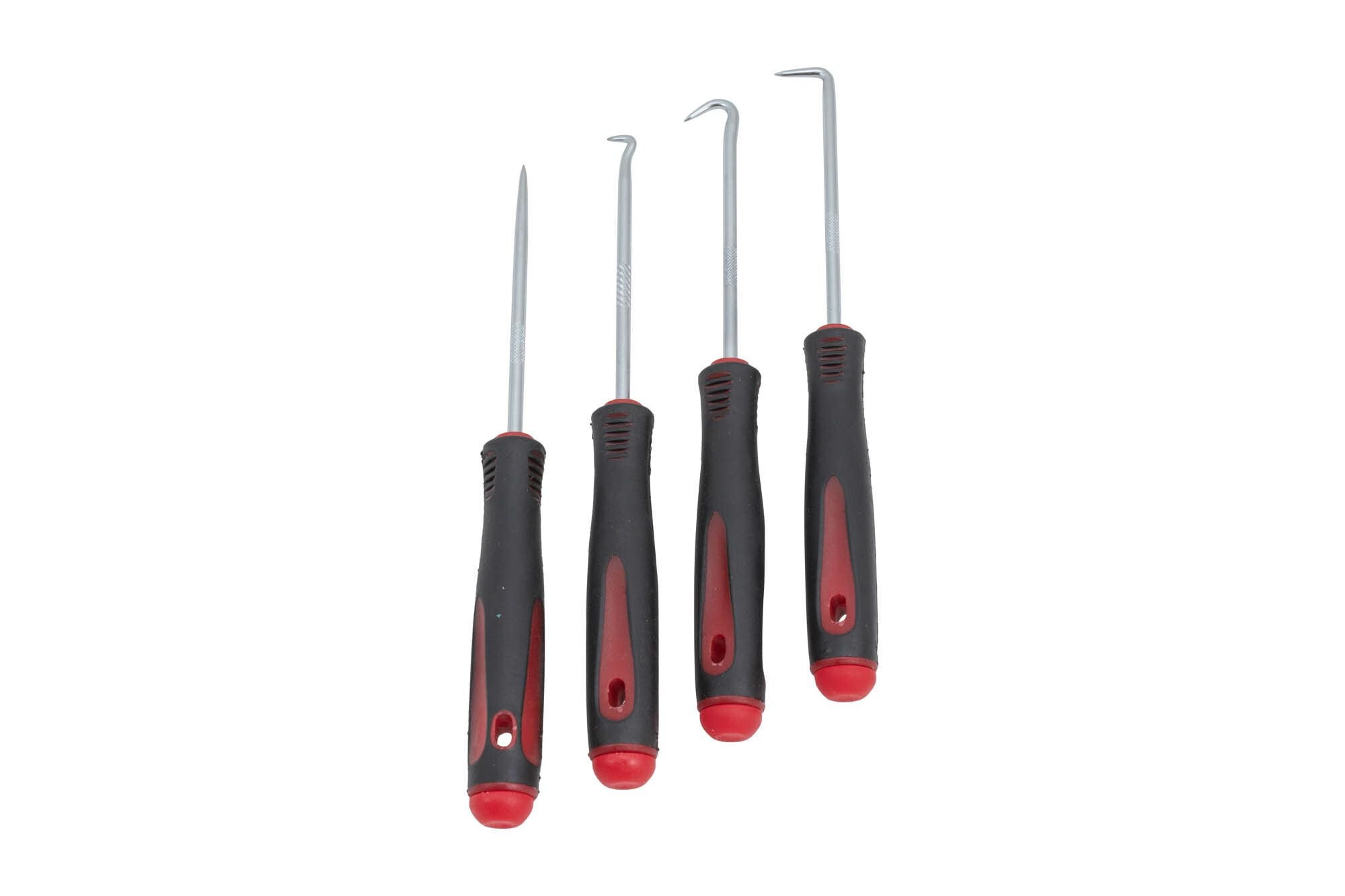 Sada háčků a hrotů na vytažení o-kroužků, simeringů, odstranění nečistot apod. Ergonomický design pro maximální pohodlí Sada obsahuje 4 nástroje 160mm