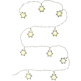 Bílé hvězdy - šesticípé 10LEDČasovač: 6/18 hDélka osvětleného kabelu: 1,5 mDélka přívodní šňůry: 0,3 mTyp baterií: 2 x AAPočet LED: 10Barva světla: teplá bíláPro vnitřní použitíKrytí: IP 20
