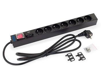 Rozvodný panel Triton 19“ 1U; 7 x zásuvka podle ČSN, max. 16 A; kabel 3 x 1,5 mm, 2 m + zástrčka univerzál CZ-DE max. 16