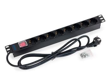 Rozvodný panel Triton 19“ 1U; 8 x zásuvka podle DIN, max. 16 A; kabel 3 x 1,5 mm, 2 m + zástrčka univerzál CZ-DE, max. 1