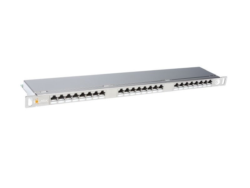 Solarix 19" Patch panel 24xRJ45 CAT6 STP s vyvaz.lištou nerez 0,5U, SX24HD-6-STP-SL
