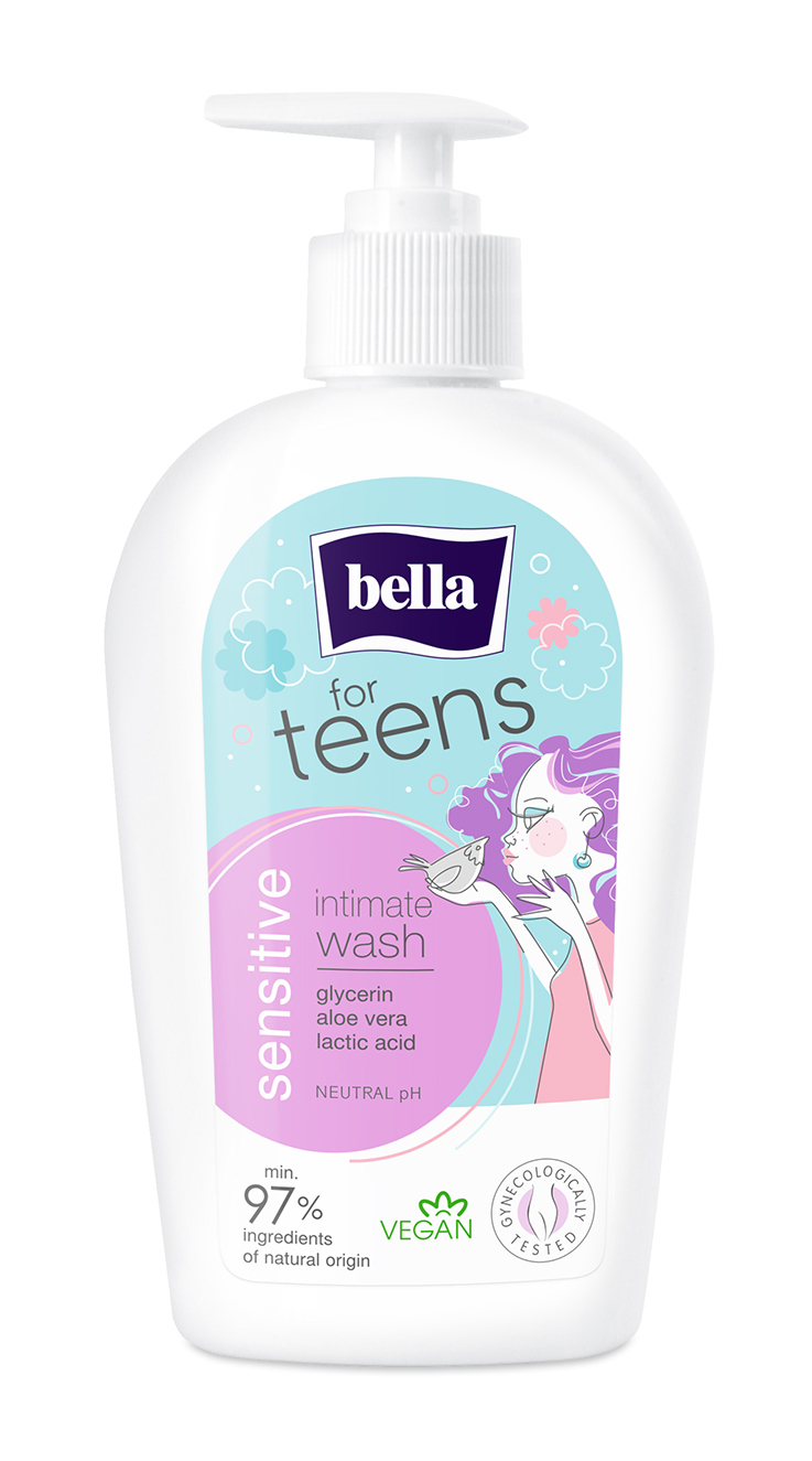 Dívky v prepubertálním období mají kvůli nízké hladině estrogenu pH intimních partií zásadité či neutrální a neměly by používat intimní prostředky určené pro dospělé. Intimní gel Bella For Teens Sensitive je vyvinut speciálně pro dívky s citlivou pokožkou. Díky neutrálnímu pH se nenarušuje přirozená mikroflóra intimních partií a složení obohacené o aloe, kyselinu mléčnou a glycerin pokožku hydratuje a pomáhá zklidnit podráždění.