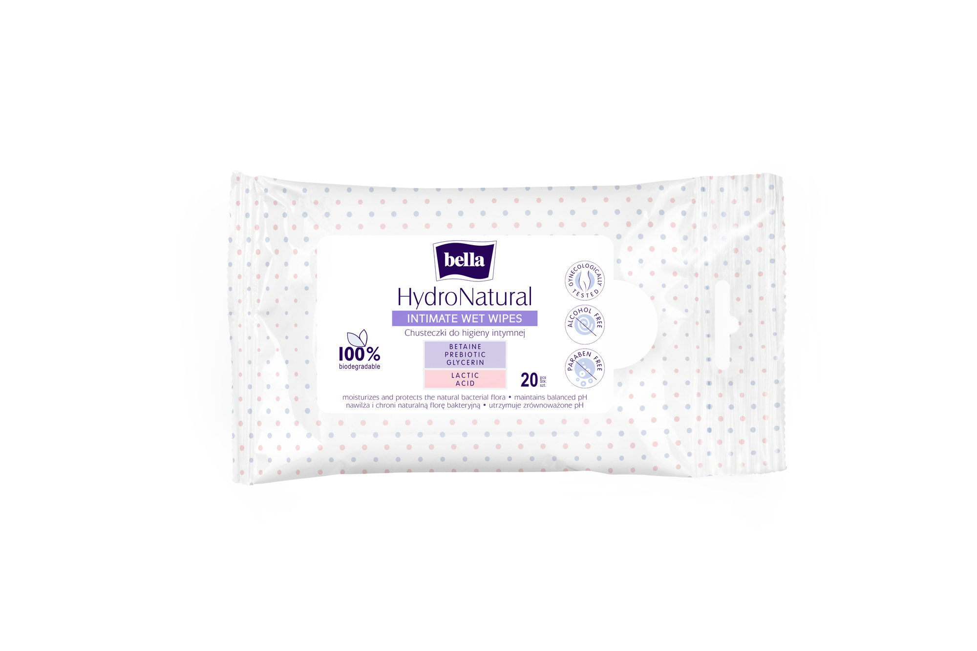 Intimní ubrousky Bella HydroNatural jsou navrženy tak, aby poskytovaly jemnou a účinnou péči o citlivá místa. Díky obsahu kyseliny mléčné a prebiotik si pokožka udrží přirozené pH, což pomáhá chránit intimní partie před podrážděním a nepříjemným zápachem. Neobsahují alkohol, proto jsou vhodné i pro ženy s citlivou pokožkou a lze je používat každý den.