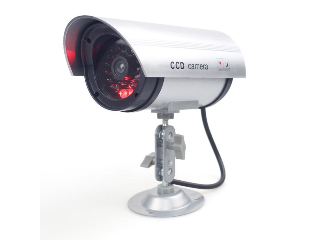 Venkovní atrapa moderní bezpečnostní kamery s elektronickou imitací nočního infrapřisvícení. Atrapa se skládá z plastového pouzdra včetně kloubového stojanu s možností natočení vertikálně i horizontálně. Montáž atrapy kamery je velmi jednoduchá pomocí vrutů na podklad. Kamera má velmi realistický vzhled podpořený infrapřisvícením a odradí každého pachatele od jeho úmyslu. Nelze rozeznat, zdali se jedná o atrapu kamery nebo funkční bezpečnostní kameru. Statistiky ukazují, že atrapa kamery dokáže několikanásobně snížit riziko napadení nebo vykradení objektu.