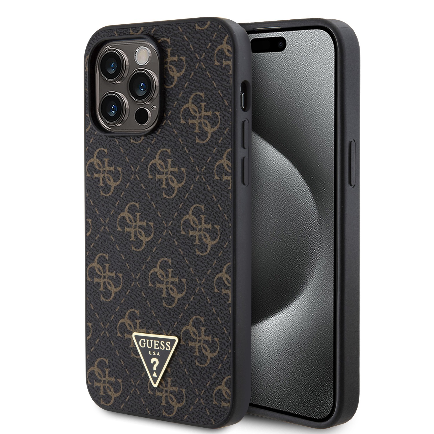 Guess PU Leather 4G Triangle Metal Logo Zadní Kryt pro iPhone 14 Pro Max Black