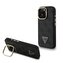 Guess PU 4G Strass Triangle Logo Stand Camera Frame MagSafe Zadní Kryt pro iPhone 15 Pro Black
