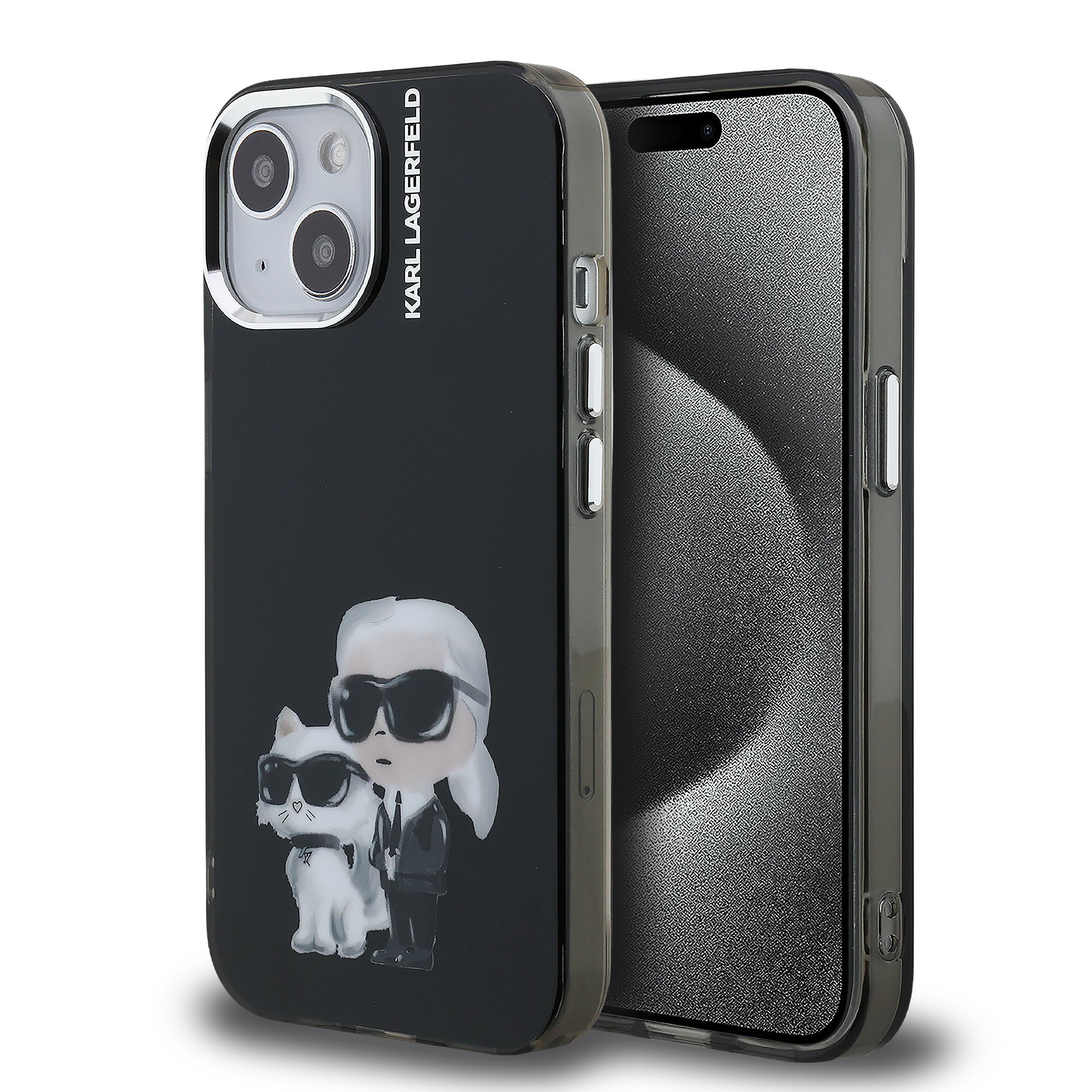 Karl Lagerfeld IML Aquarelle Karl and Choupette Zadní Kryt pro iPhone 15 Black