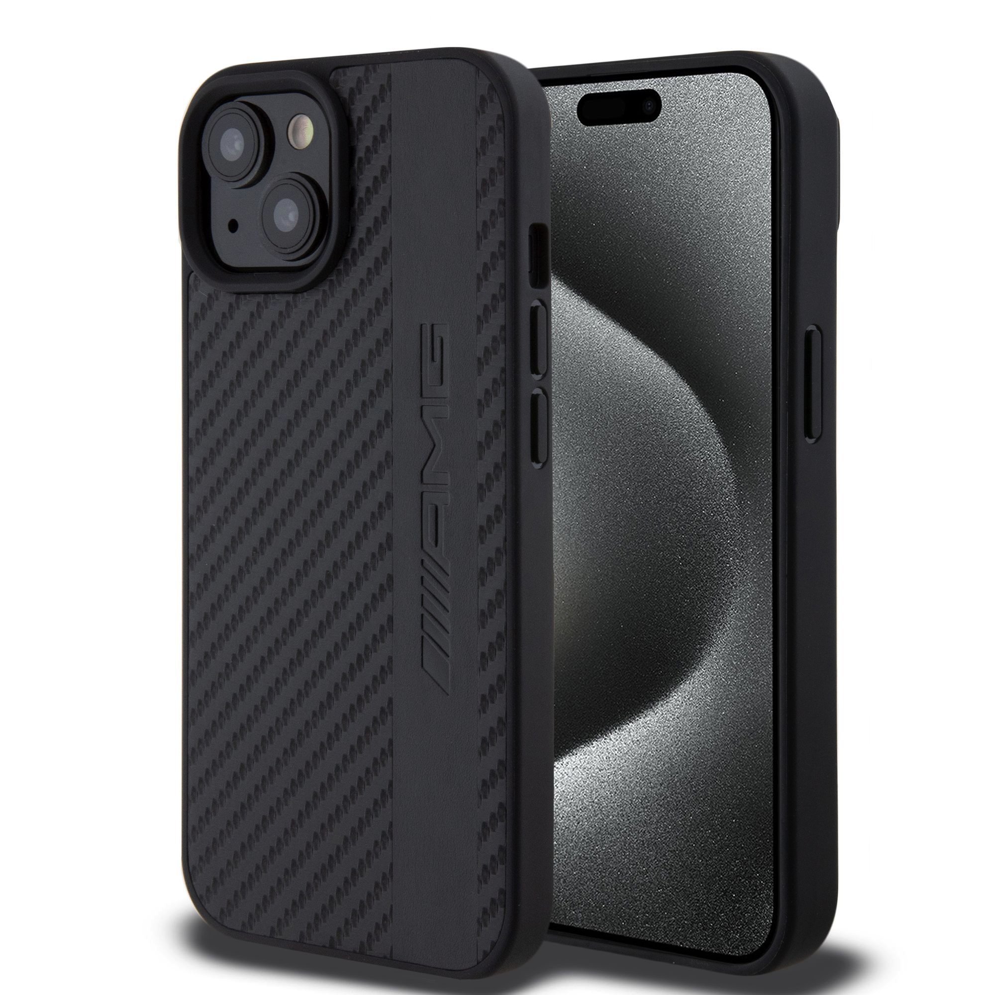 AMG PC/TPU Carbon Effect and Leather Stripe Magsafe Zadní Kryt pro iPhone 15 Black