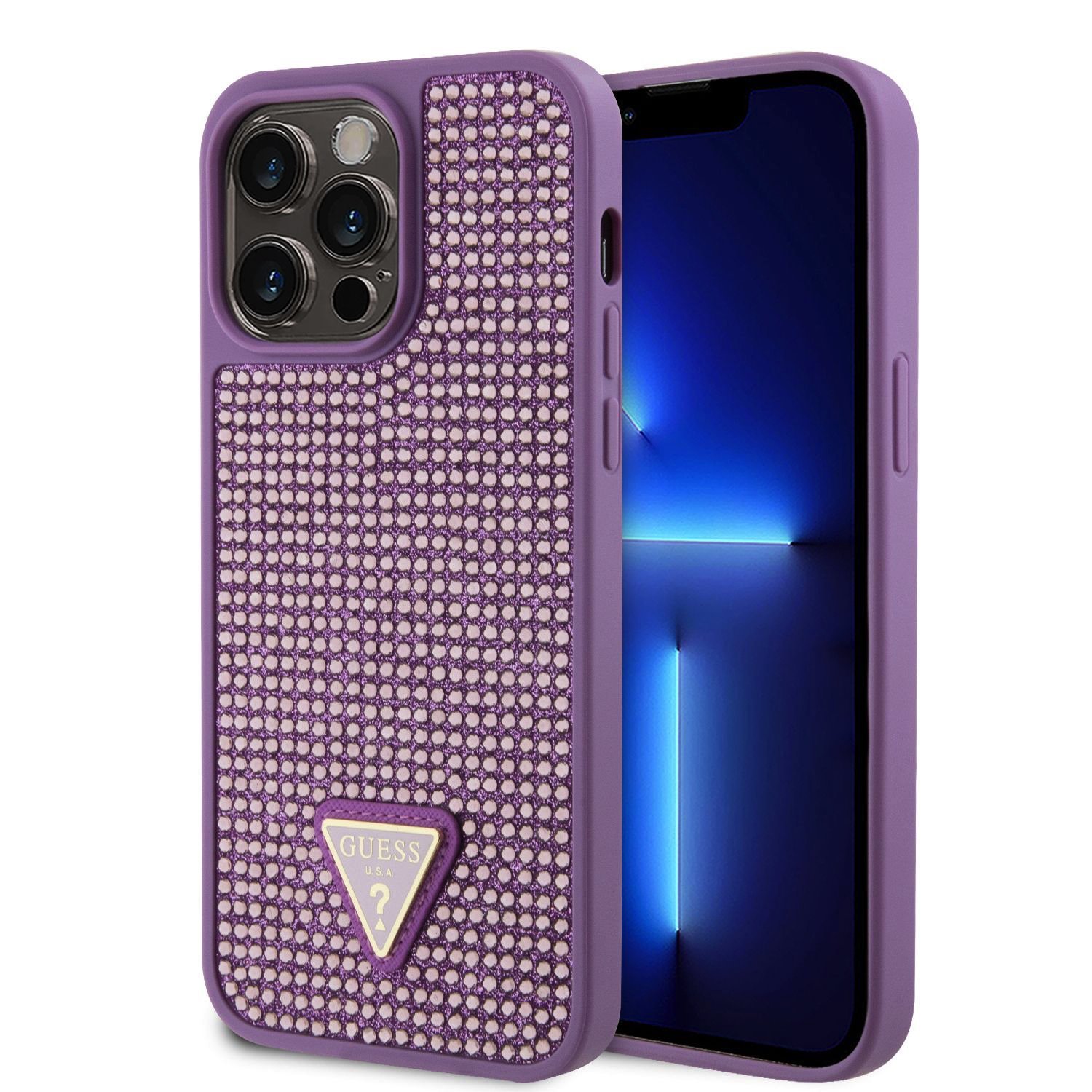 Guess Rhinestones Triangle Metal Logo Kryt pro iPhone 15 Pro Max Purple
