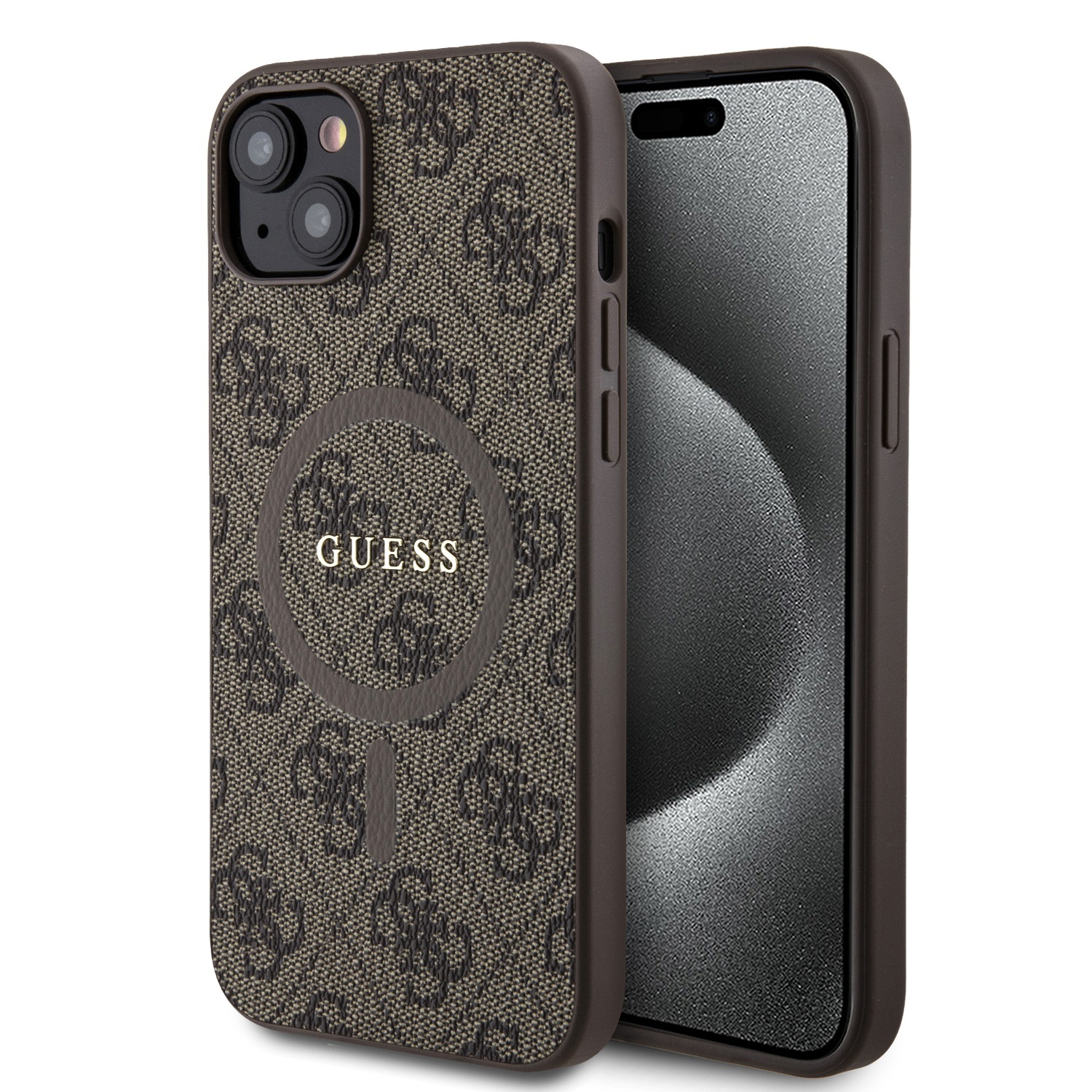 Guess PU Leather 4G Colored Ring MagSafe Zadní Kryt pro iPhone 15 Plus Brown