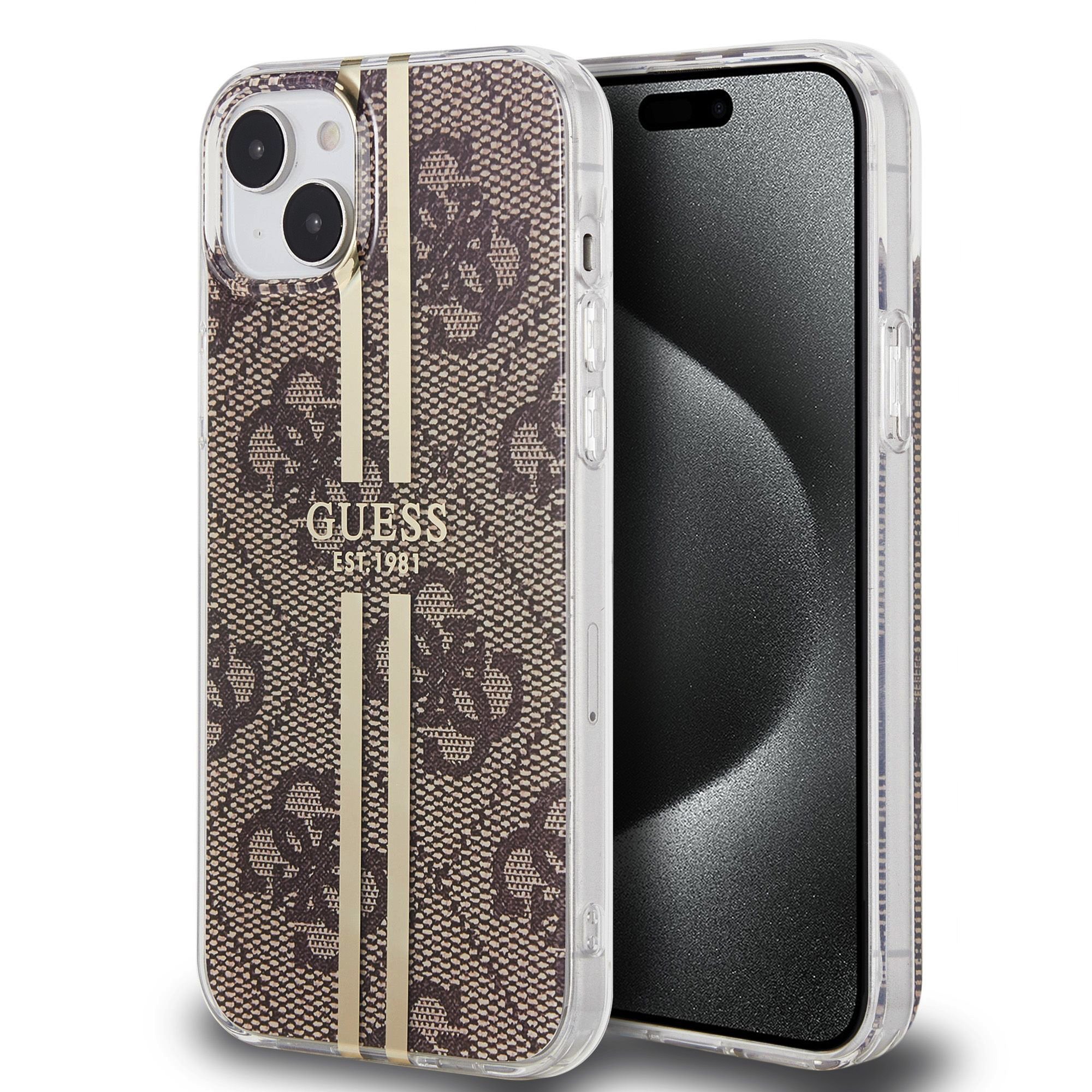 Guess IML 4G Gold Stripe Zadní Kryt pro iPhone 15 Brown