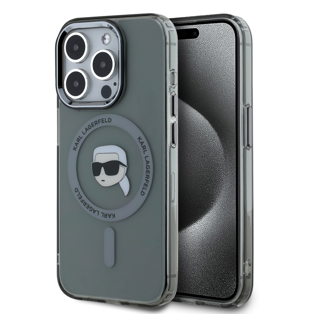 Karl Lagerfeld IML Karl Head Metal Frame MagSafe Zadní Kryt pro iPhone 15 Pro Black
