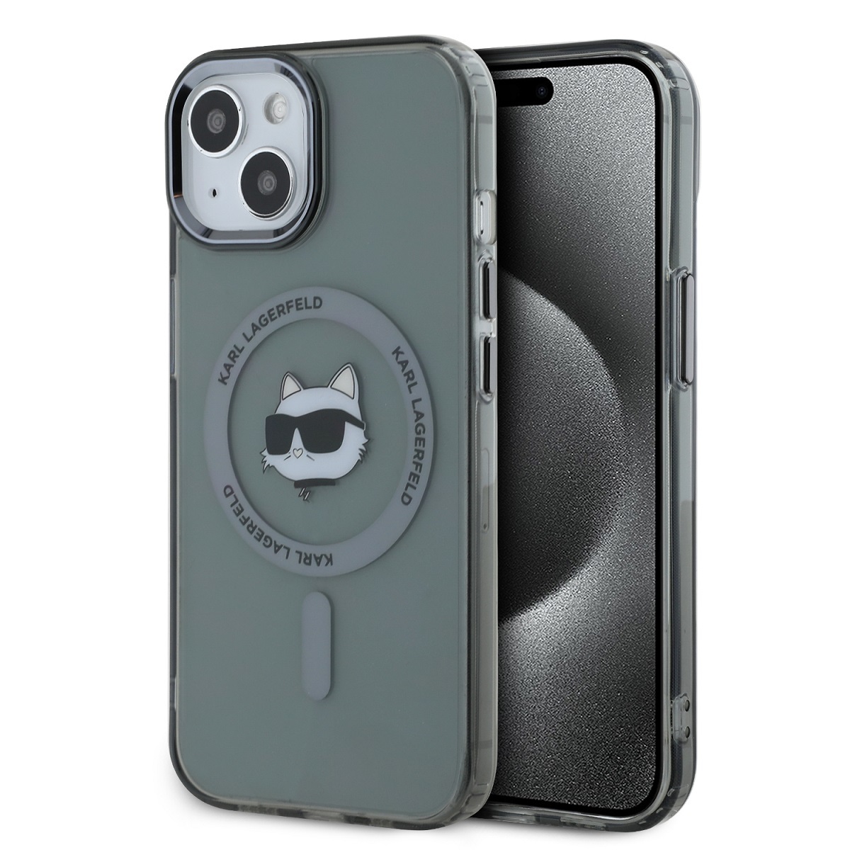 Karl Lagerfeld IML Choupette Head Metal Frame MagSafe Zadní Kryt pro iPhone 15 Black