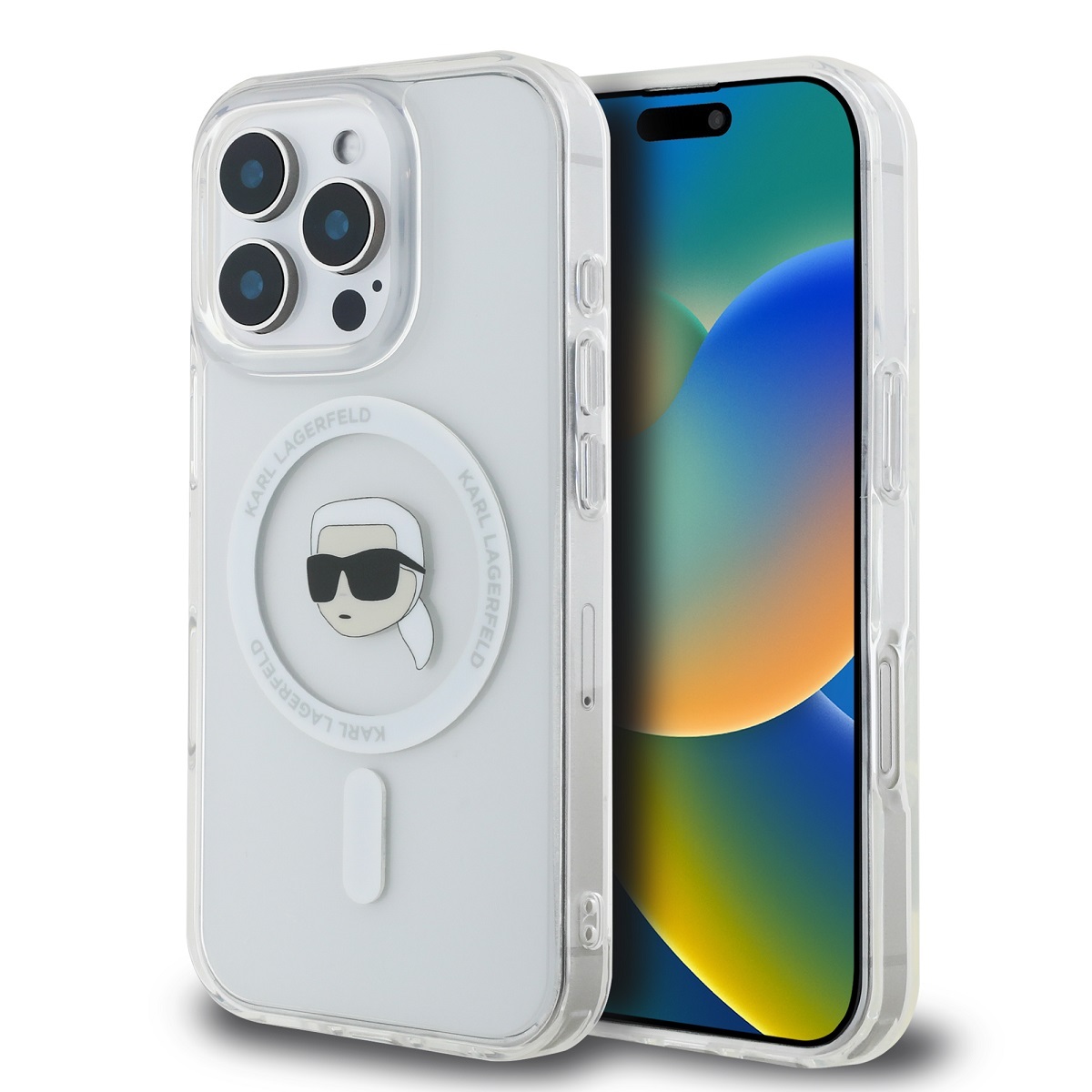 Karl Lagerfeld IML Karl Head Metal Frame MagSafe Zadní Kryt pro iPhone 16 Pro Max Transparent