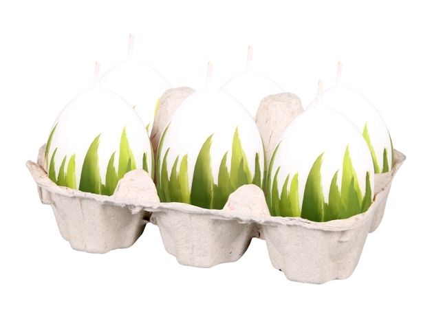 Svíčka TRÁVA malované vejce velikonoční matná d4,5x6,5cm