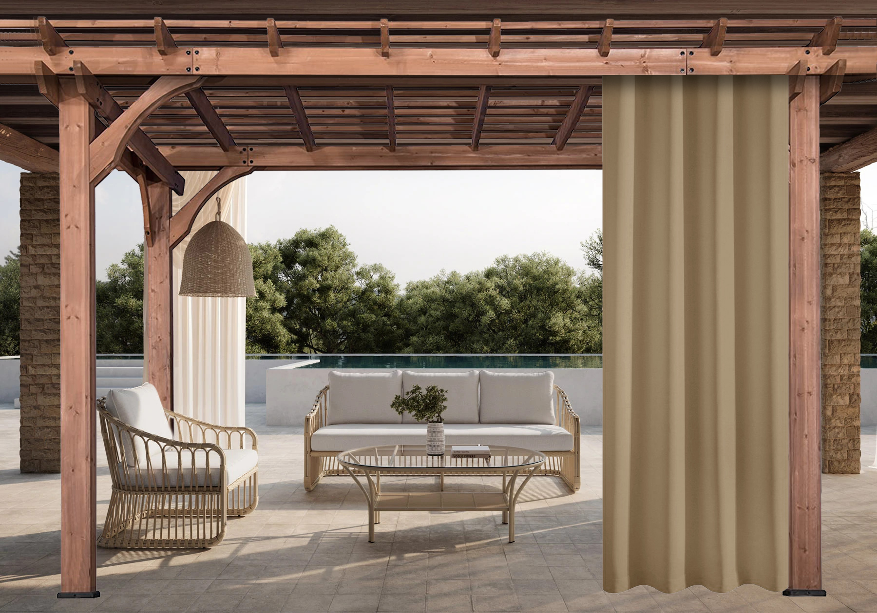 Voděodolný venkovní závěs nabízíme ve více rozměrech. Je vyrobený z vysoce kvalitní látky. Je vhodný do pergoly, na balkón nebo do altánu. Závěs je odolný proti povětrnostním podmínkám, chrání před deštěm, eliminuje sluneční záření. Tkanina snáší nízké i vysoké teploty. Materiál je odolný proti poškrábání a poškození mechanickým způsobem. Závěs je oboustranný - stejná barva z rubu i lícu.