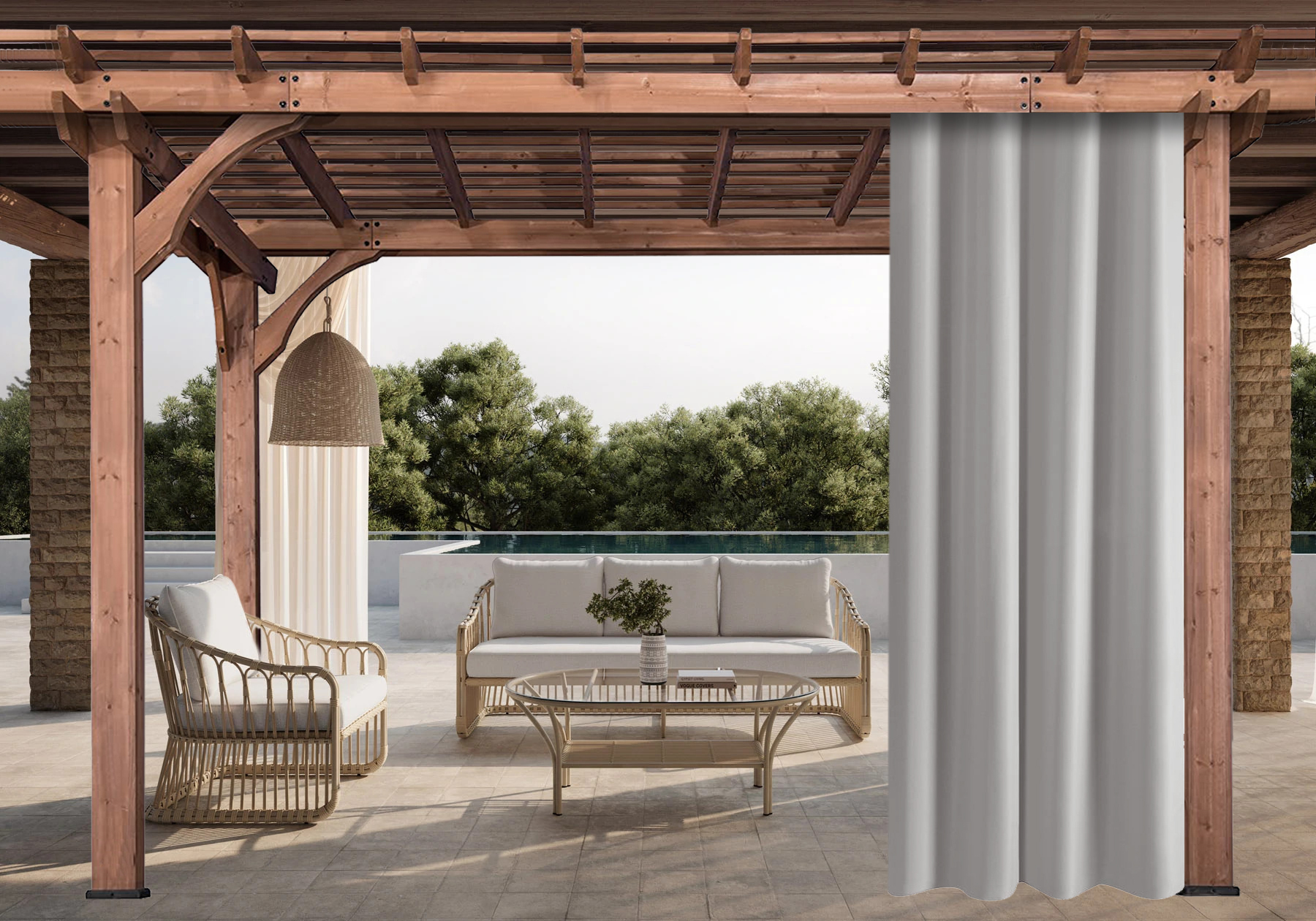 Venkovní zahradní závěsy vyráběné v různých vzorech a trendových barvách jsou nabízeny s kroužky nebo na tunýlek ve více rozměrech. Ideální volba pro Vaši pergolu nebo altán.