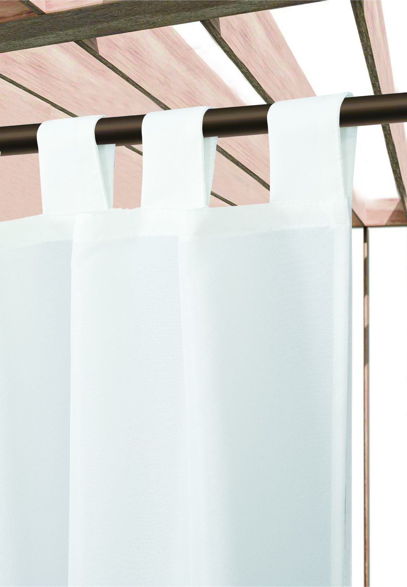 Voděodolný venkovní závěs s poutky pro tyčovou gárnyž vyrobený z kvalitní látky 140 g/m2 je vhodný do pergoly, na balkón nebo do altánu. Závěs je odolný proti povětrnostním podmínkám, chrání před deštěm, eliminuje sluneční záření. Snáší nízké i vysoké teploty. Závěs má 8 poutek vysokých 10 cm.