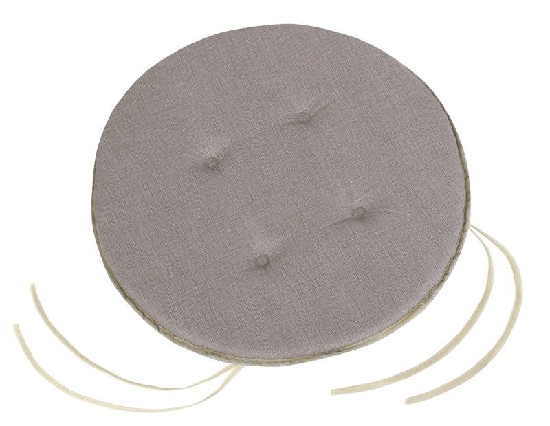 Sedák kulatý hladký se šňůrkami, uvnitř je 3 cm vysoký polyuretan, sedák je na čtyřech místech prošitý okrasným stehem proti pohybu vnitřní vyplně. Praní na 30C v automatické pračce.