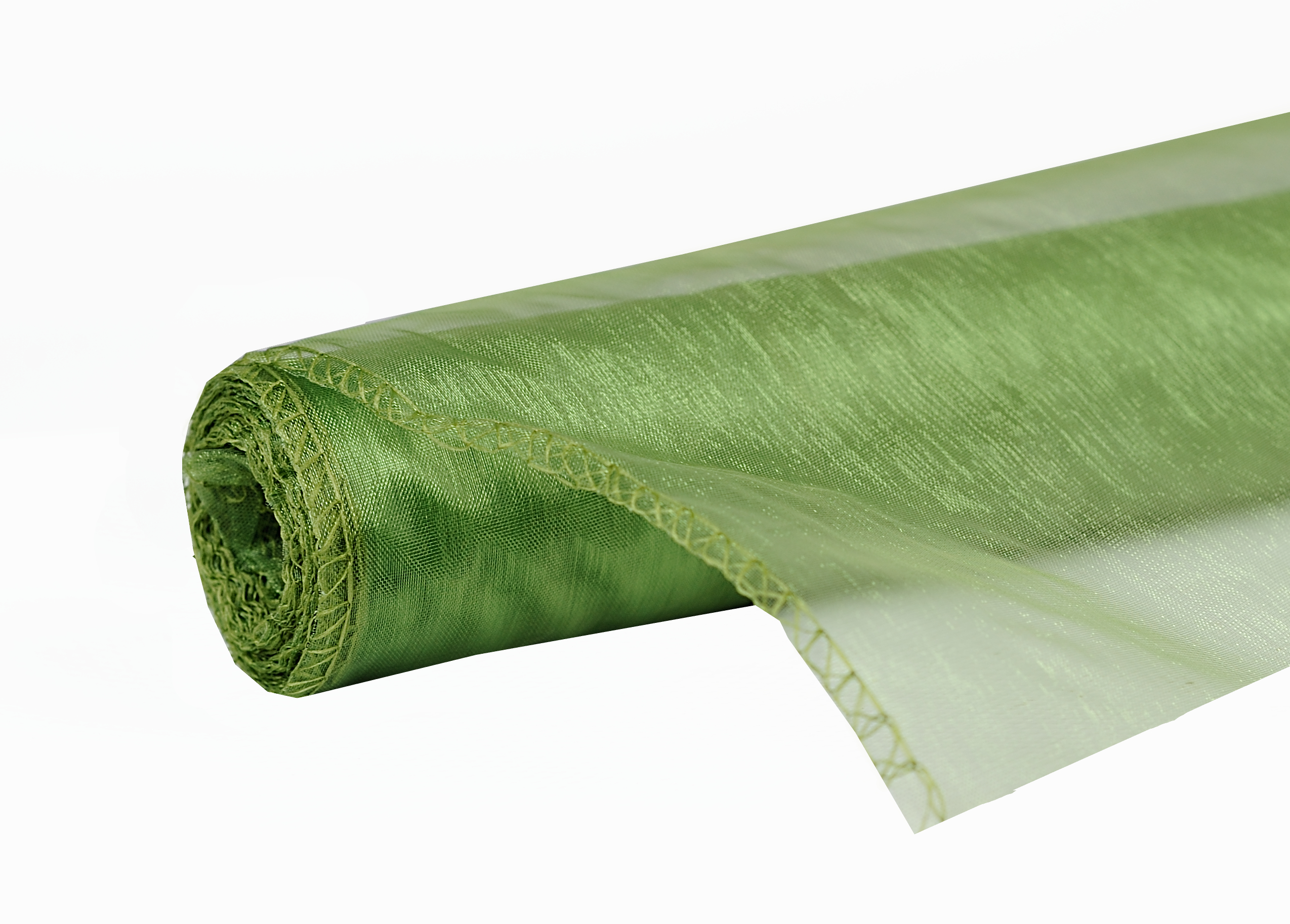 Tmavě zelená 48,5 cm široká organzová role uni. Organza je po bocích obšitá, dobře tvarovatelná. Jemná klasická tkanina, vhodná zejména k svatební výzdobě (stoly, auta, židle, atd.), aranžování květin a kreativnímu tvoření.