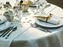 Nádherný bílý ubrus s nešpínivou úpravou, který se používá v luxusních interiérech, je jeden z nejpoužívanějších dekoračních ubrusů pro slavnostní tabule.