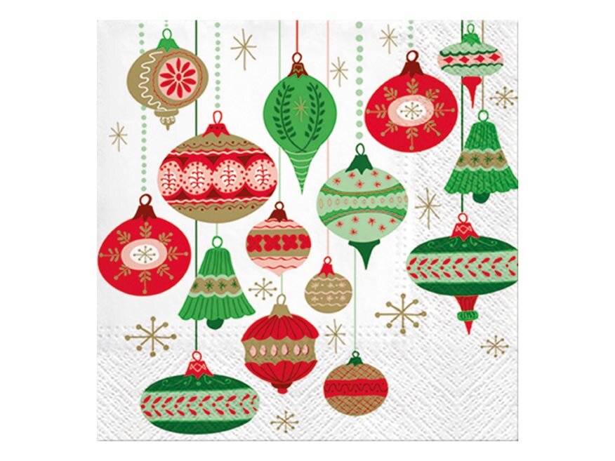 Papírové vánoční ubrousky. Kvalitní vánoční ubrousky z třívrstvého papíru s motivem různých baněk. Jsou krásným vánočním doplňkem, které zpestří vánoční prostírání a vykouzlí příjemnou atmosféru.