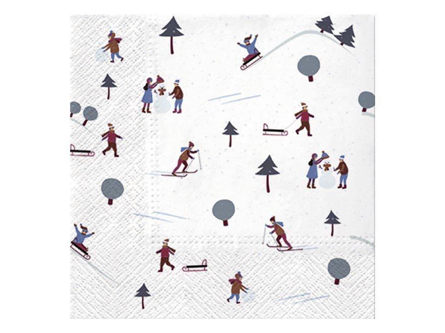 Papírové vánoční ubrousky. Kvalitní vánoční ubrousky z třívrstvého papíru s motivem zimních aktivit. Jsou krásným vánočním doplňkem, které zpestří vánoční prostírání a vykouzlí příjemnou atmosféru.