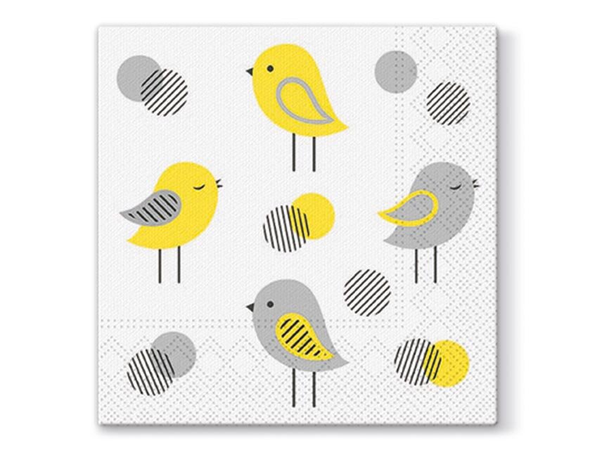 Třívrstvý papírový ubrousek. Krásné kvalitní ubrousky s motivem různobarevných ptáčků. Ideální na zahradní posezení, oslavy a na zkrášlení interiéru.