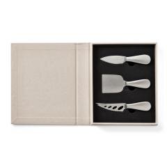 W środku znajdziesz trzy noże odpowiednie do Twoich ulubionych gatunków serów. Od miękkiego Brie po kruchy ser pleśniowy i mocny parmezan mamy wszystko, czego potrzebujesz. Wszystkie produkty wykonane są ze stali nierdzewnej i można je myć w zmywarce. Dodatkowo znajdziesz przewodnik, jak złożyć idealny talerz serów.