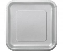 Talerzyki papierowe srebrne 23cm kwadratowe 14szt