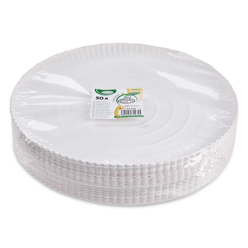 Papírové talíře o průměru 34 cm v balení 50 kusů představují ideální řešení pro rychlé a pohodlné servírování jídla - a to nejen na akcích, party či oslavách, ale také v pekárnách, kavárnách a fast foodech. S nimi bude podávání pokrmů snadné a zároveň šetrné k přírodě.