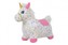 Hopsadlo je velice oblíbená hračka u dětí. Ergonomický tvar pomůže nejmenším při jejich prvních krůčcích. Uši slouží jako držadla. Dítě usedne, chytne zvíře za ouška a může vesele skákat. Vhodné do interiéru i exteriéru - určeno výhradně na jemné a neostré povrchy, jako je tráva, písek, dlažba aj. Jednorožec je vyroben z gumového materiálu a má plyšový potah s barevnými hvězdičkami, který je odnímatelný a pratelný. Jednorožec vydavá zvuky stisknutím tlačítka umístněného na hlavě pod hřívou. Hračka obsahuje baterie 3x LR44, které jsou součástí balení. Balení obsahuje také pumpičku. Velikost nafouknutého jednorožce: 56 x 50 cm Výška sedla: 23 cm Rozměry balení: 35 x 13 x 22 cm Vhodné pro děti od 12 měsíců