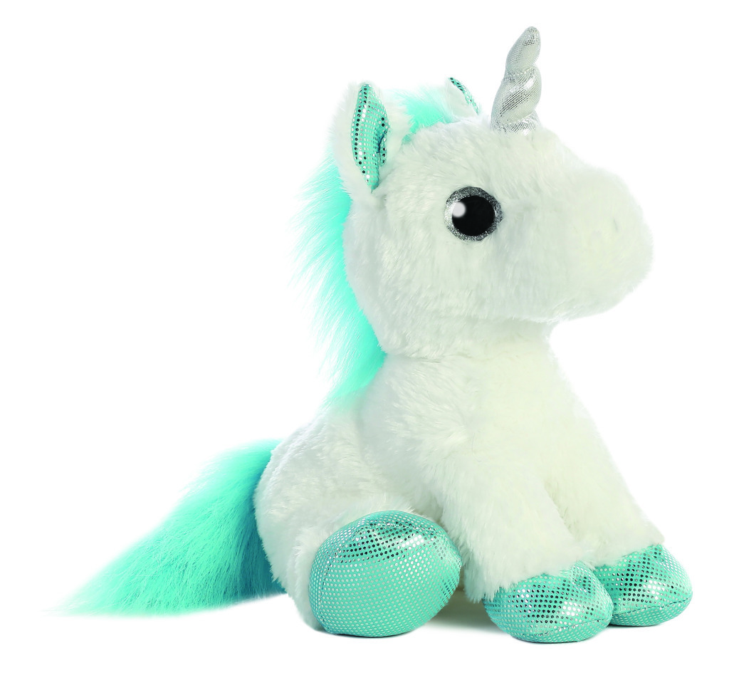 Plyšový jednorožec sedící bílo/modro/třpytivý 30 cm
