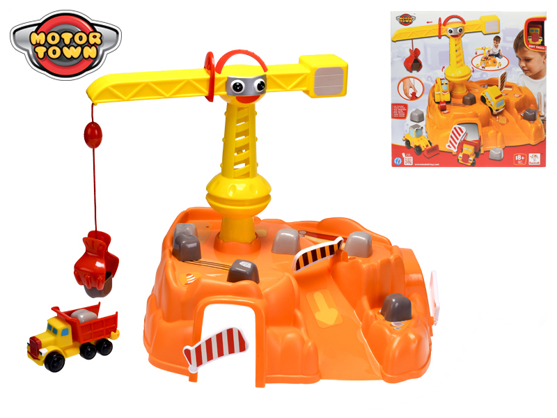 Staveniště s jeřábem + auto 2ks 18m+ v krabičce