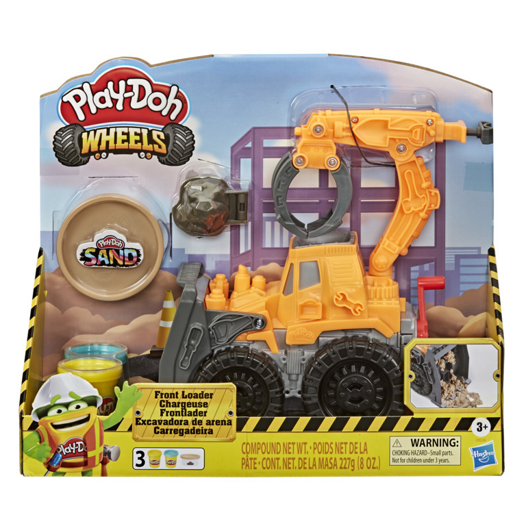 Postavte to a rozbijte to! Díky tomuto plně funkčnímu čelnímu nakladači a nové směsi Play-Doh Sand se mohou děti cítit jako skuteční stavební dělníci. Vytvarujte si cihly a kameny, pak otevřete a zavřete mechanismus čelistí, abyste je jeřábem mohli naložit do auta. Kameny se nabírají do čelního nakladače. Tento doplněk řady Play-Doh Wheels obsahuje navíc 3 standardní kelímky Play-Doh.