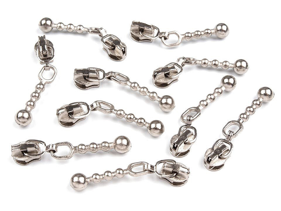 Kovový ozdobný jezdec má tvar tyčinky, kterou zakončuje kulička. Je s aretací, což znamená, že zdrhovadlo zůstává rozevřené pouze tolik, kolik si přejete. Jezdec je vhodný na metráž, kterou u nás najdete pod kódem 050716, 750678, 900594, 560600.