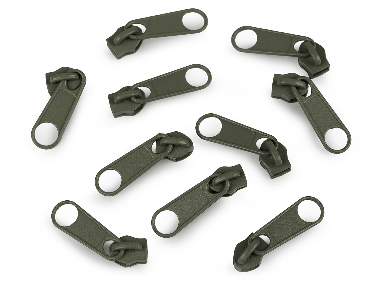 Jezdec ke spirálovým zipům No 5 pro metráž typu POL - 100 ks - 327 zelená olivová