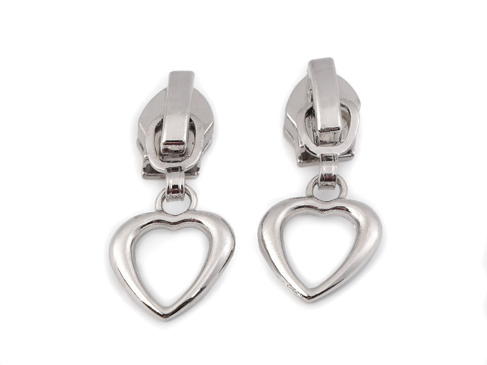 Jezdec ke spirálovým zipům No 5 srdce, hvězda, květ - 30 ks - 1 nikl srdce